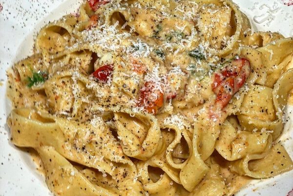 Receptet är beräknat till två personer. Pasta 250 g Salt & Peppar Olivolja Småtomater 6 st Vitlök 2-3 klyftor Parmesan 250 g Grädde 1,5 dl Kycklingbuljong 2 msk Persilja 1/2…